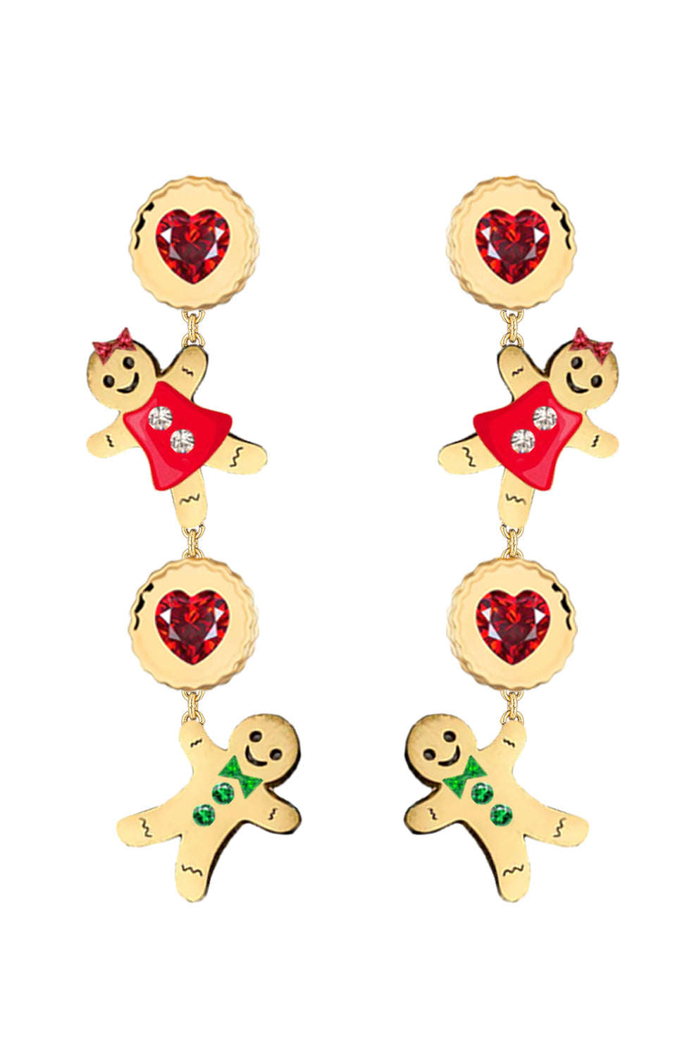 Add some holiday cheer with the Ginger Break CZ Charm Earrings. These golden dangles feature adorable gingerbread boys and girls paired with heart-shaped cookie charms, bringing a festive and playful touch to your look. Perfect for holiday parties or as a delightful stocking stuffer, they're the sweetest accessory for the season!
