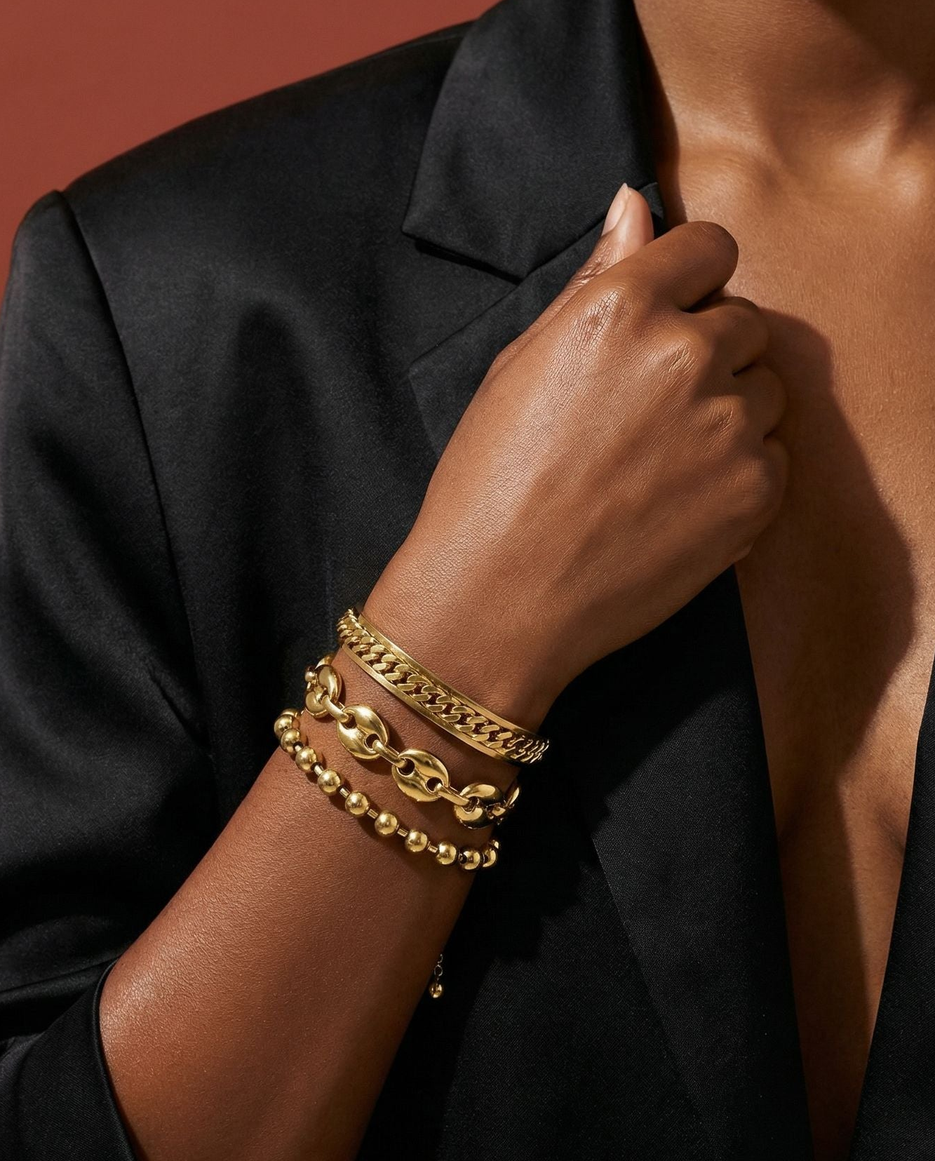 The Laurel 3-Piece Bracelet Set is perfect for subtly enhancing your look. This trio features a combination of beaded bracelets, chain links, and mariner links in a golden tone. Perfect for everyday looks or dressing up, this versatile set adds a touch of elegance and sophistication to any outfit. Elevate your accessory collection with these chic pieces.