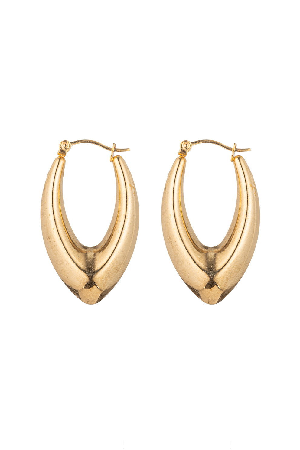 Discover the classic elegance of our Lya Golden Drop Earrings. With a chunky hoop design and a unique sculptural drop, these chic earrings are an everyday essential. They are perfect for adding a touch of sophistication to any outfit.
