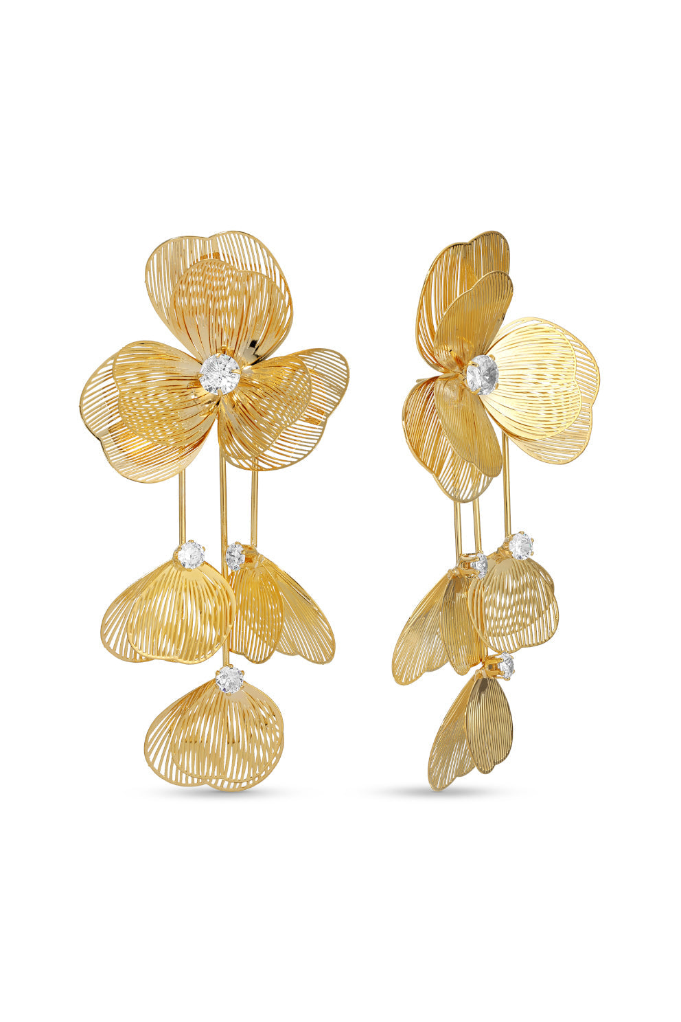 0o=[p-The Monica Translucent Flower Dangle Earrings feature golden flowers with a unique shutter design and cascading petals. Perfect as a statement piece, these earrings bring a refined floral touch to both everyday and formal styles.