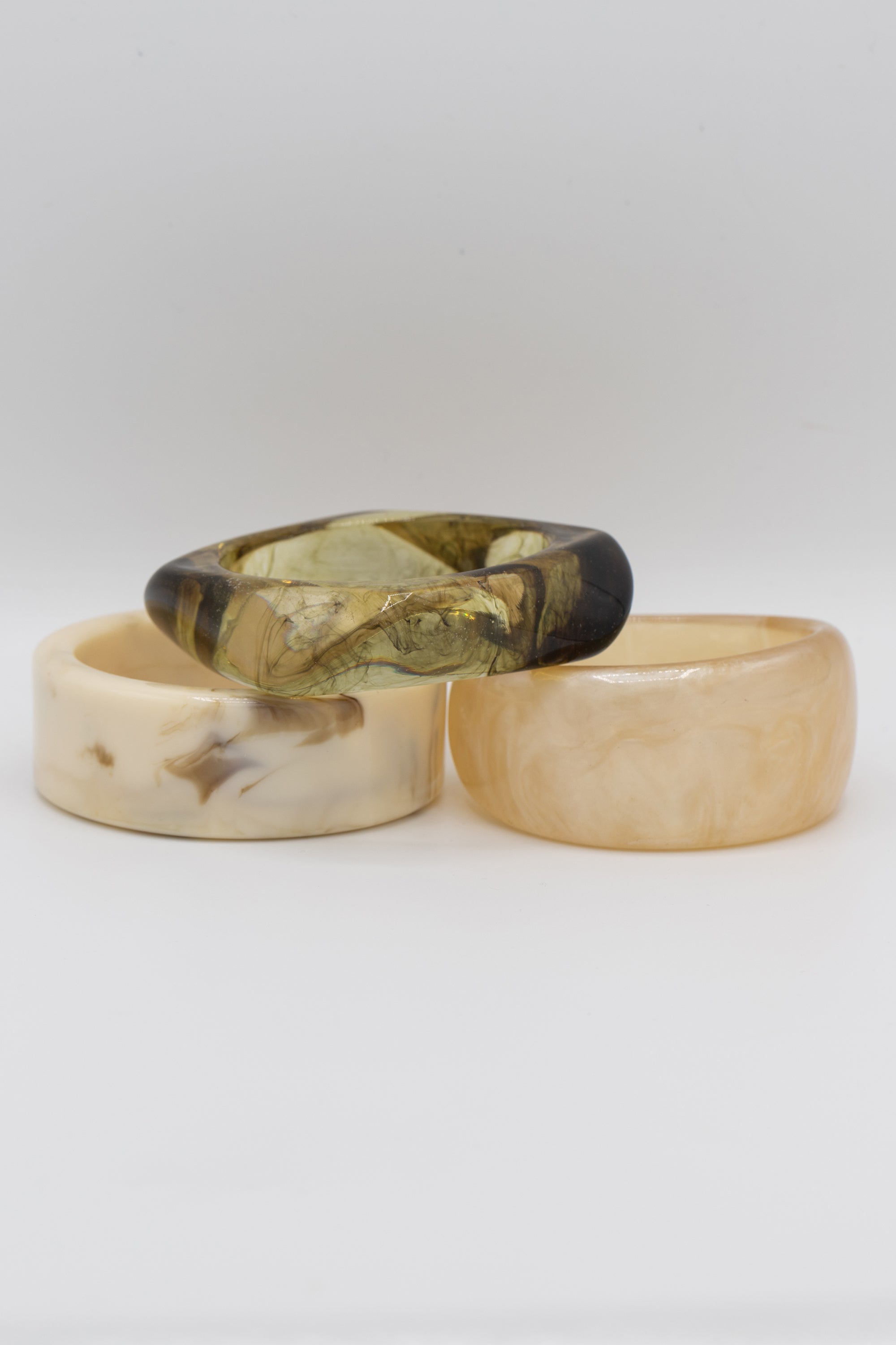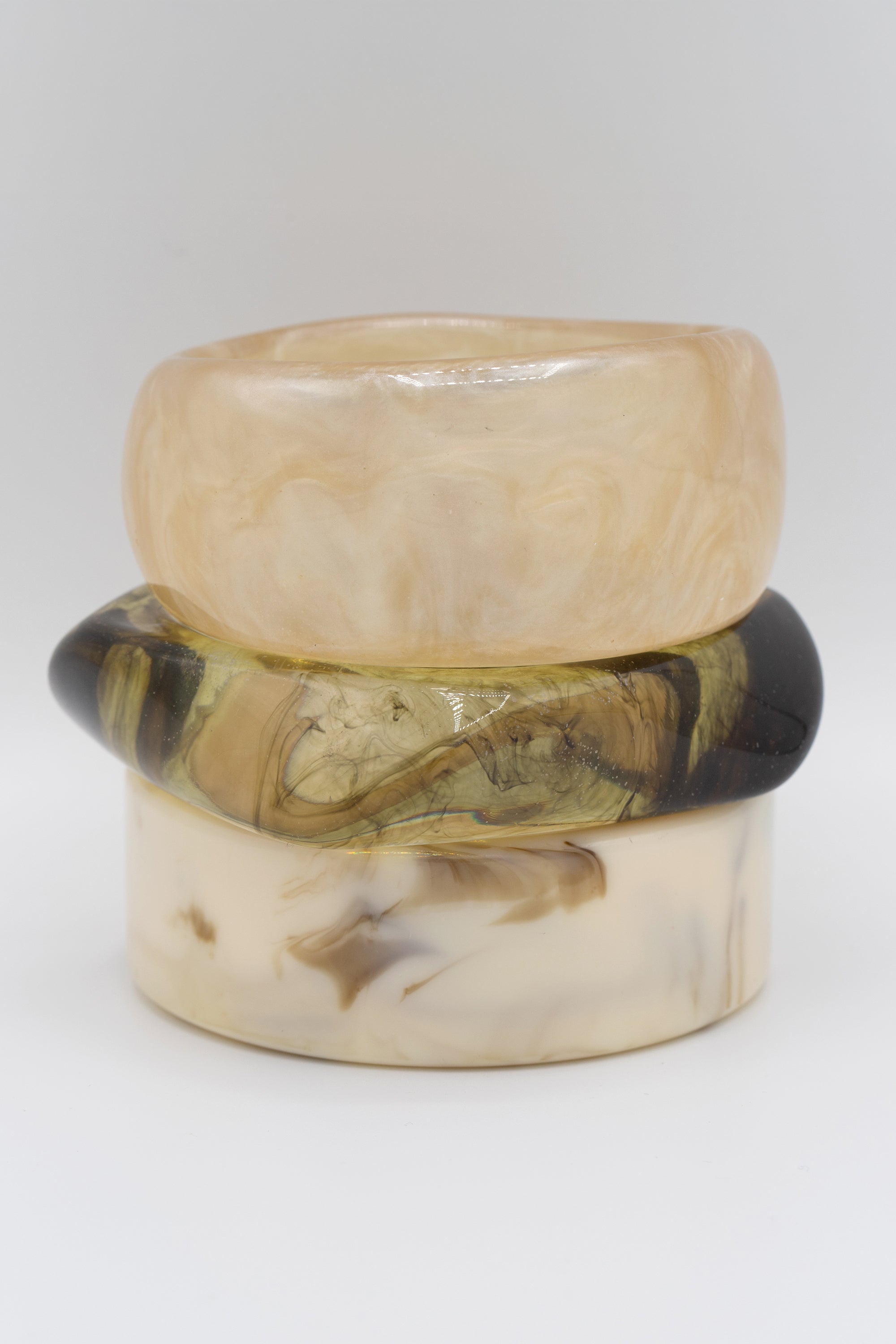 Elevate your style with the Café Cloud Bangle Set, a playful mix of rich, moody resin bangles inspired by coffee marble, smoky quartz, and creamy latte hues. This stack adds a sophisticated yet fun touch to any outfit, perfect for those who love a little whimsy with their elegance.