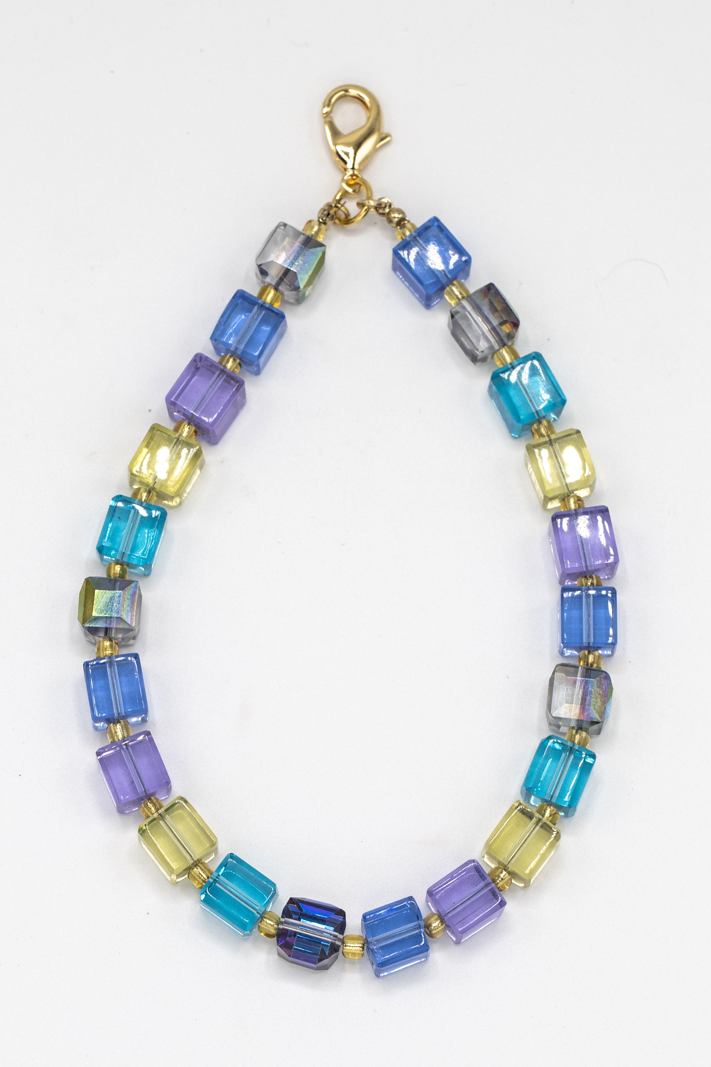 Add a splash of modern art to your everyday with the Color Code Phone Wristlet. Crafted from cube-cut glass beads in shimmering blues, purples, teals, and a touch of gold, it catches the light like stained glass in the sun. Sleek and stackable, this wristlet clips on easily, turning your phone into a playful, disco-inspired accessory that’s ready to brighten any moment.