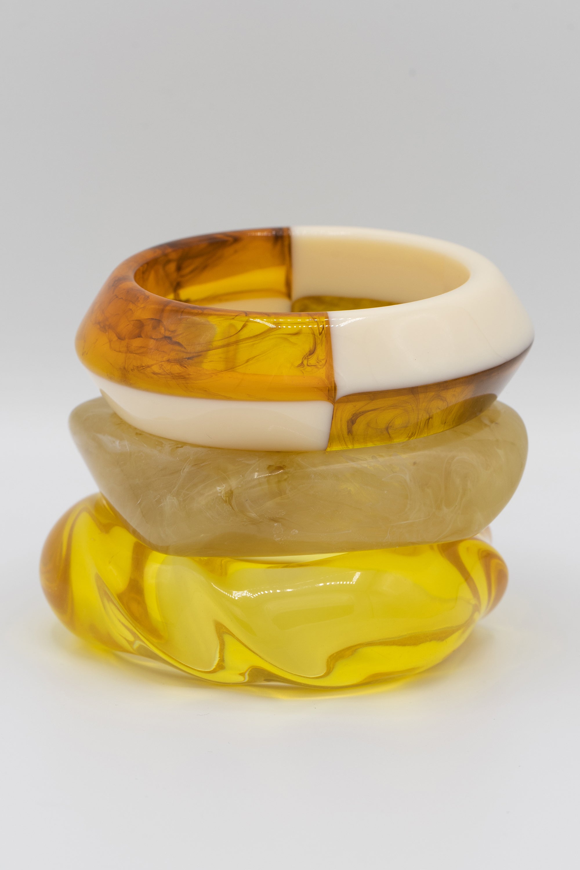 This Honey Drip Bangle Set brings a burst of sunshine to your look with its cheerful mix of yellow, honey, cream, and amber hues. Crafted from resin, these bangles blend playful charm with earthy warmth, making them the perfect accessory to brighten any outfit. Stack them up for a fun, sunny vibe that’s effortlessly stylish.