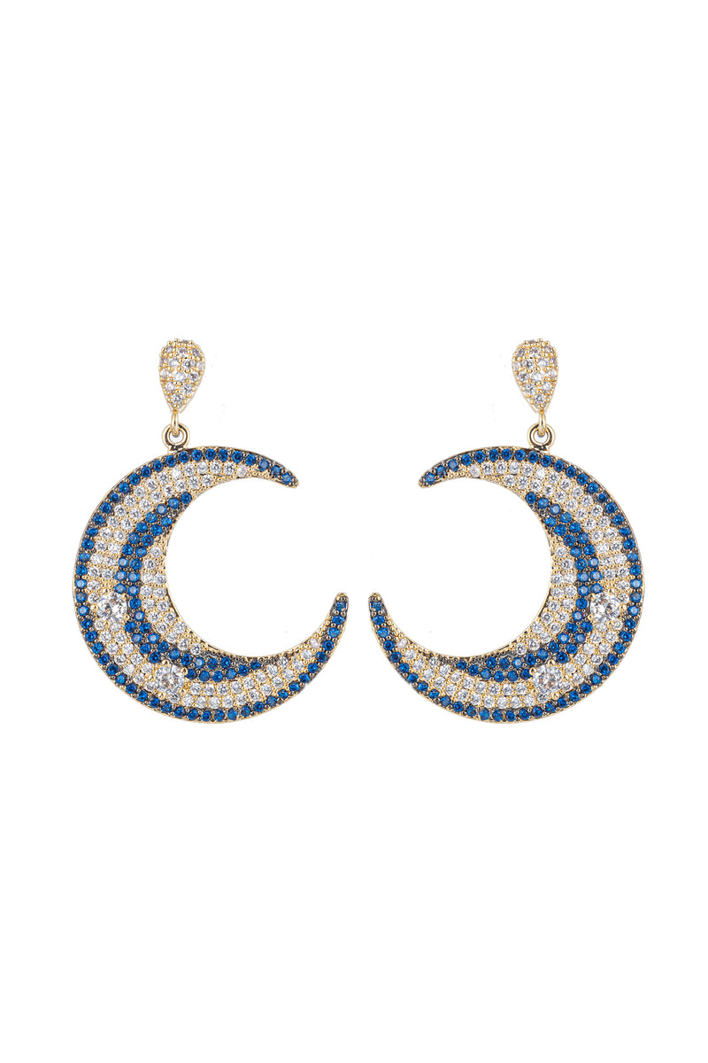 The saying “once in a blue moon” gets characterized with these beautiful moon earrings! The way the blue CZ stones coincide with one another gives these dangle earrings a look that is very rarely seen!
