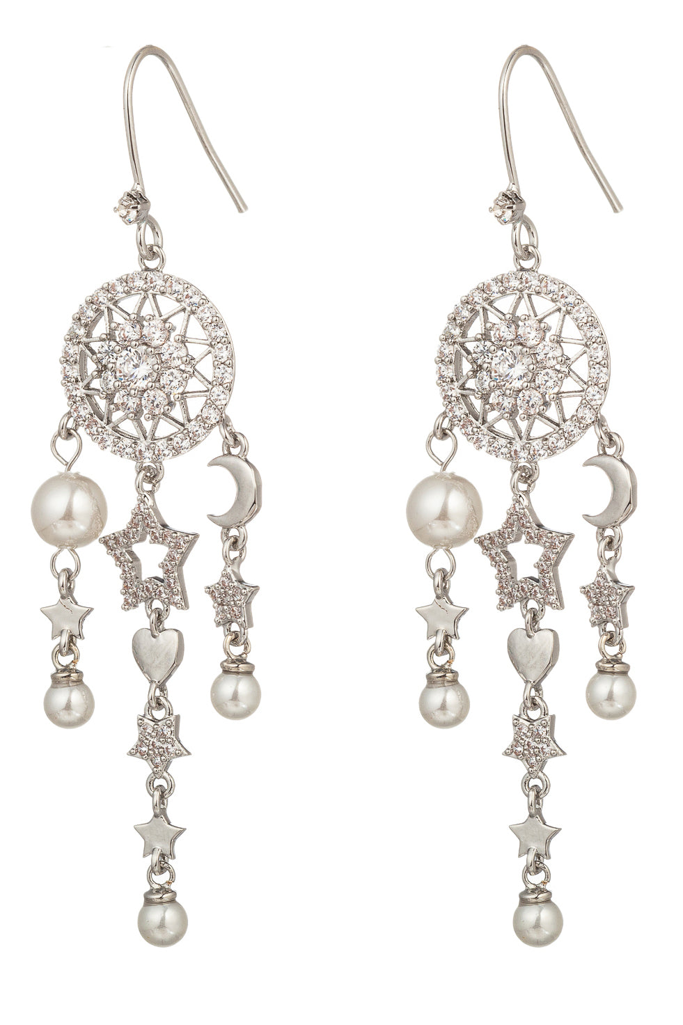 Our Dreamcatcher CZ Statement Earrings turns your favorite omen into a wearable piece of jewelry! Comprised of bright silver tone brass, these statement earrings display an array of CZ crystals that give this classic pendant an extra pop of color. Pair these CZ earrings with a simple silver ring to complete the jewelry set!