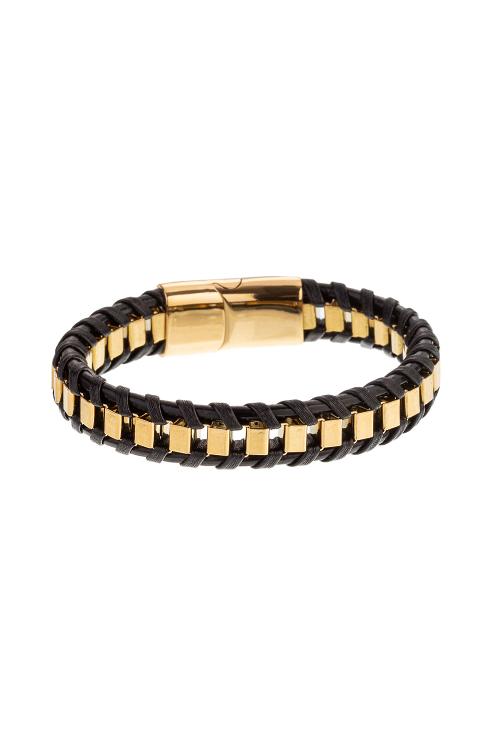 Showcase understated elegance with the Howie Cuff Bracelet, featuring golden rectangular links with black accents. Perfect for everyday looks, a night out, or a date, this classic bracelet adds a touch of sophistication to any outfit. Elevate your accessory game with this timeless piece.