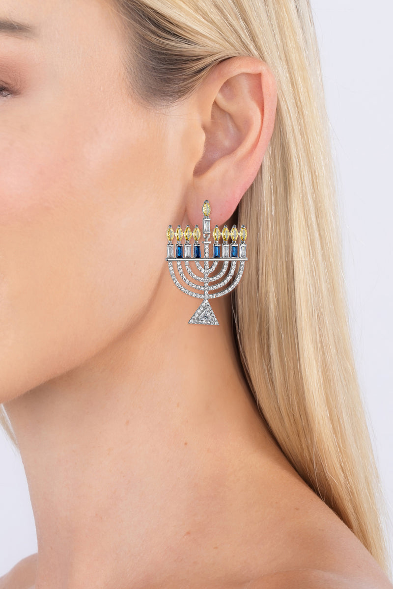 Light The Menorah CZ Drop Earring